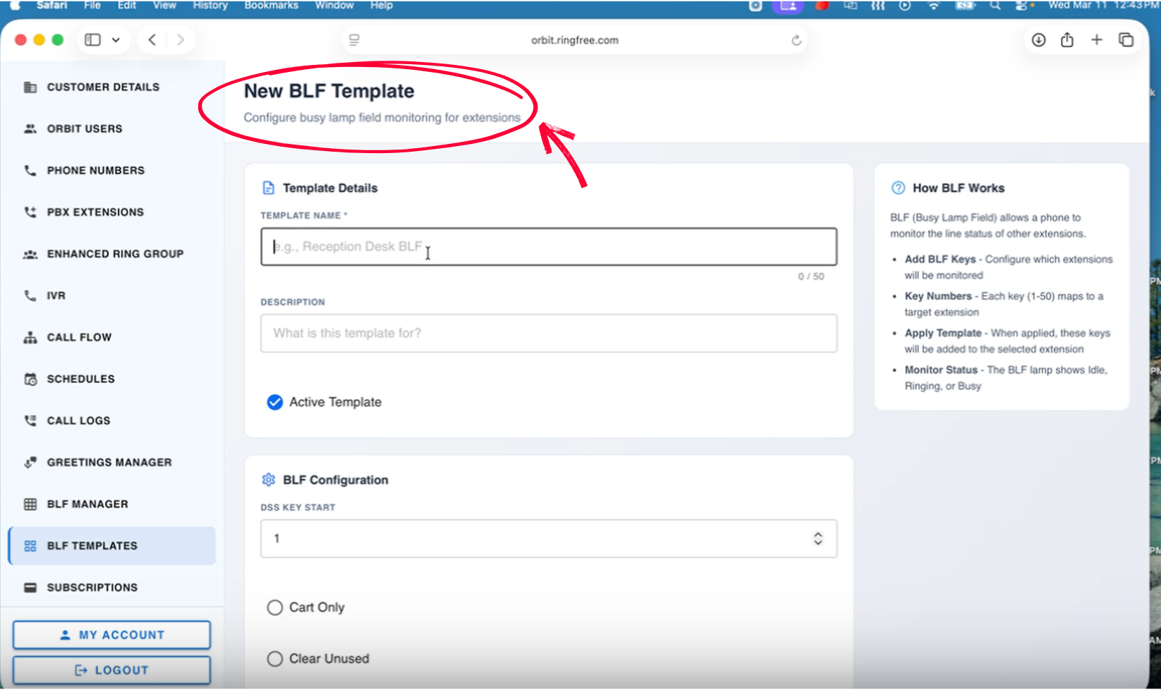 In the left menu, click BLF TEMPLATES.