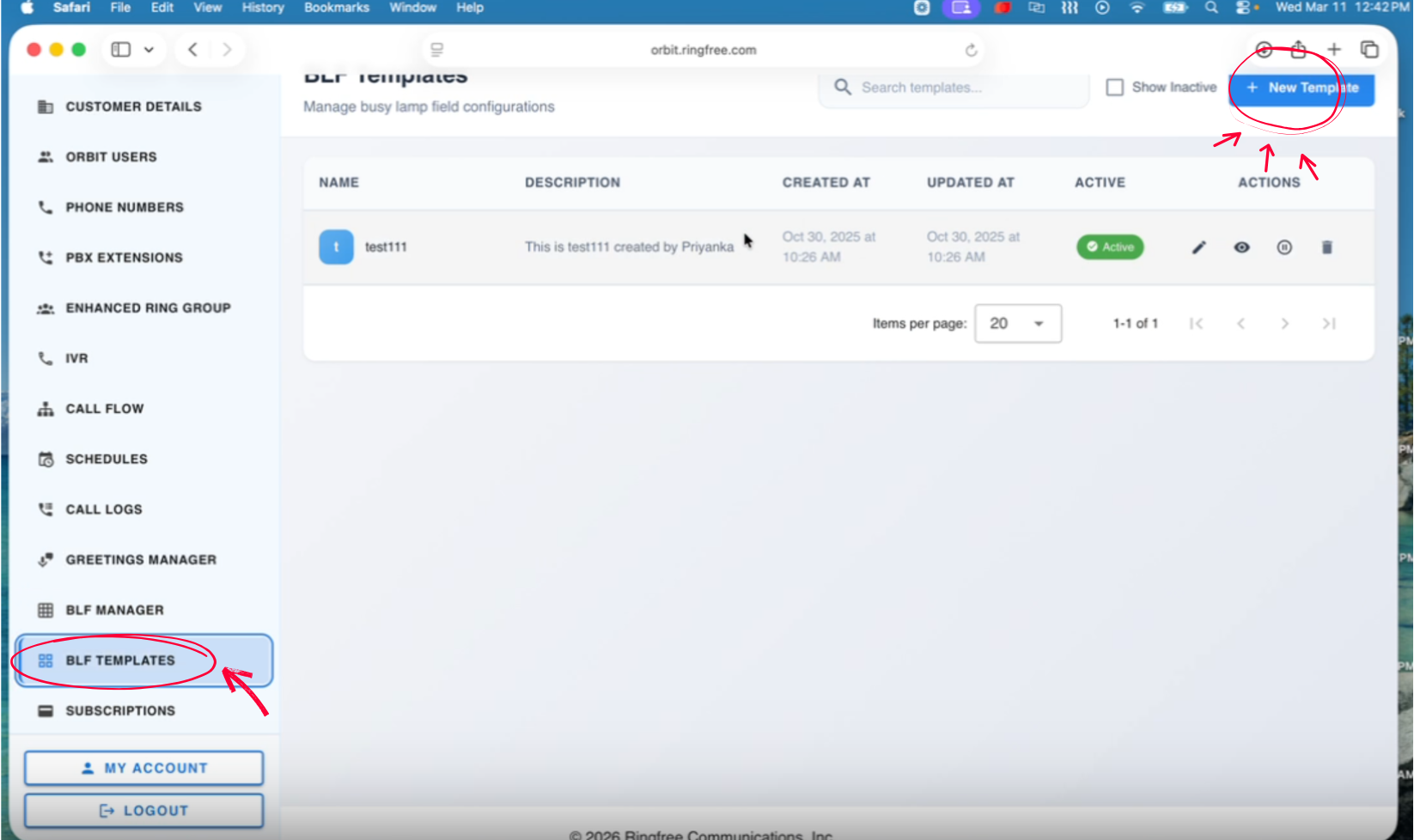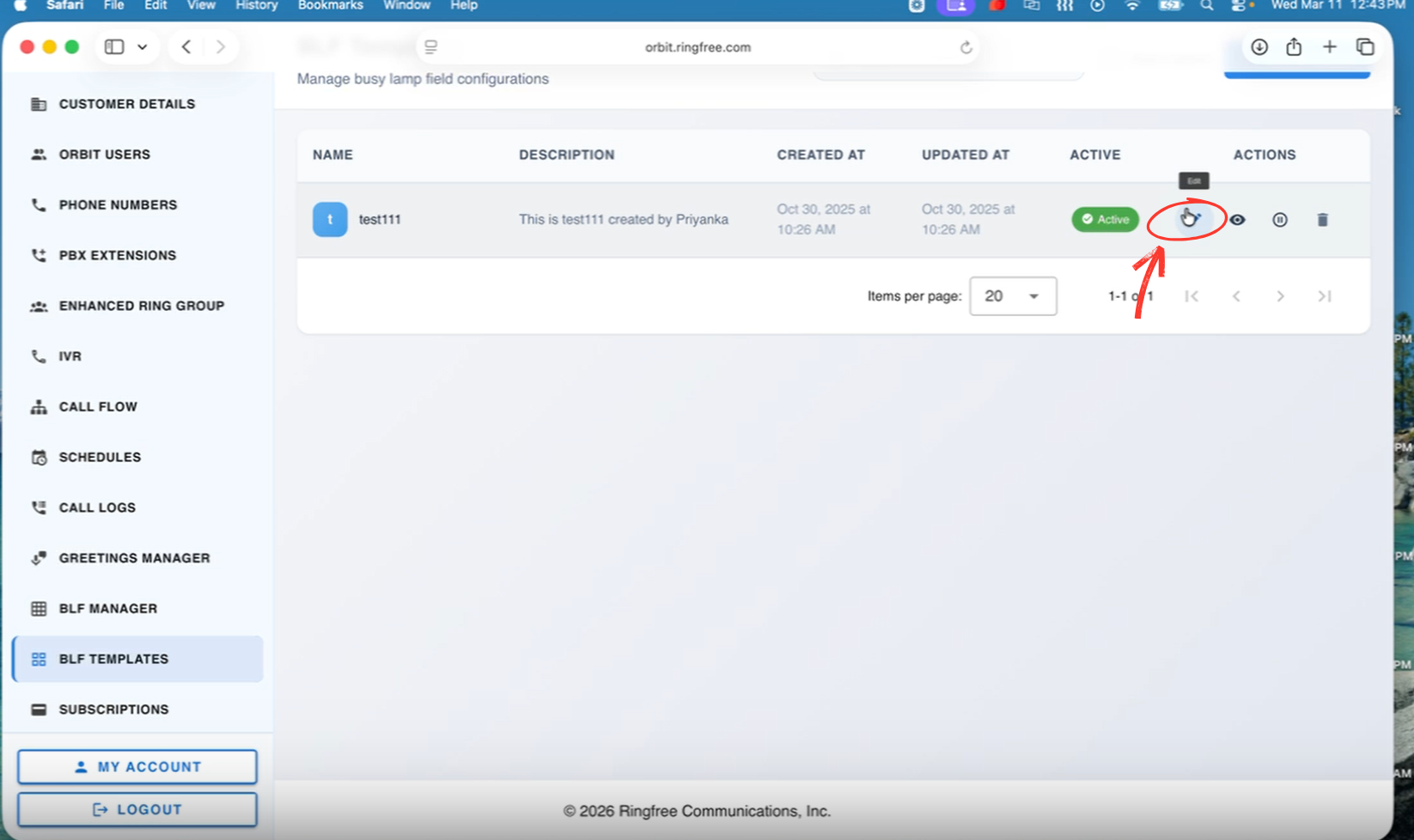 From the BLF Templates list, click the pencil icon under Actions to edit.