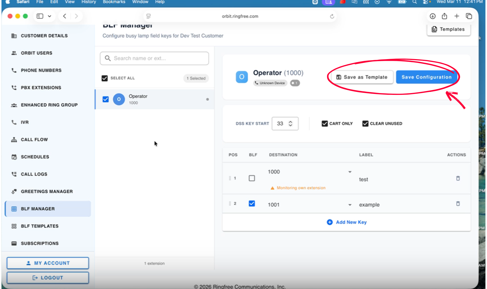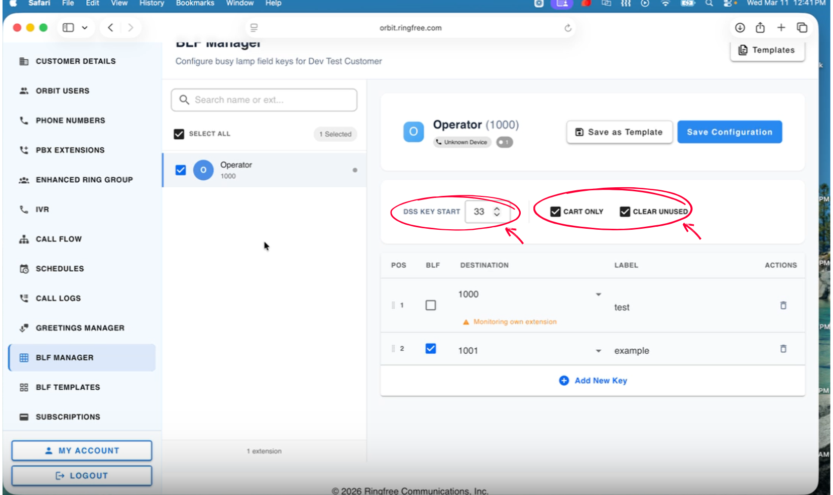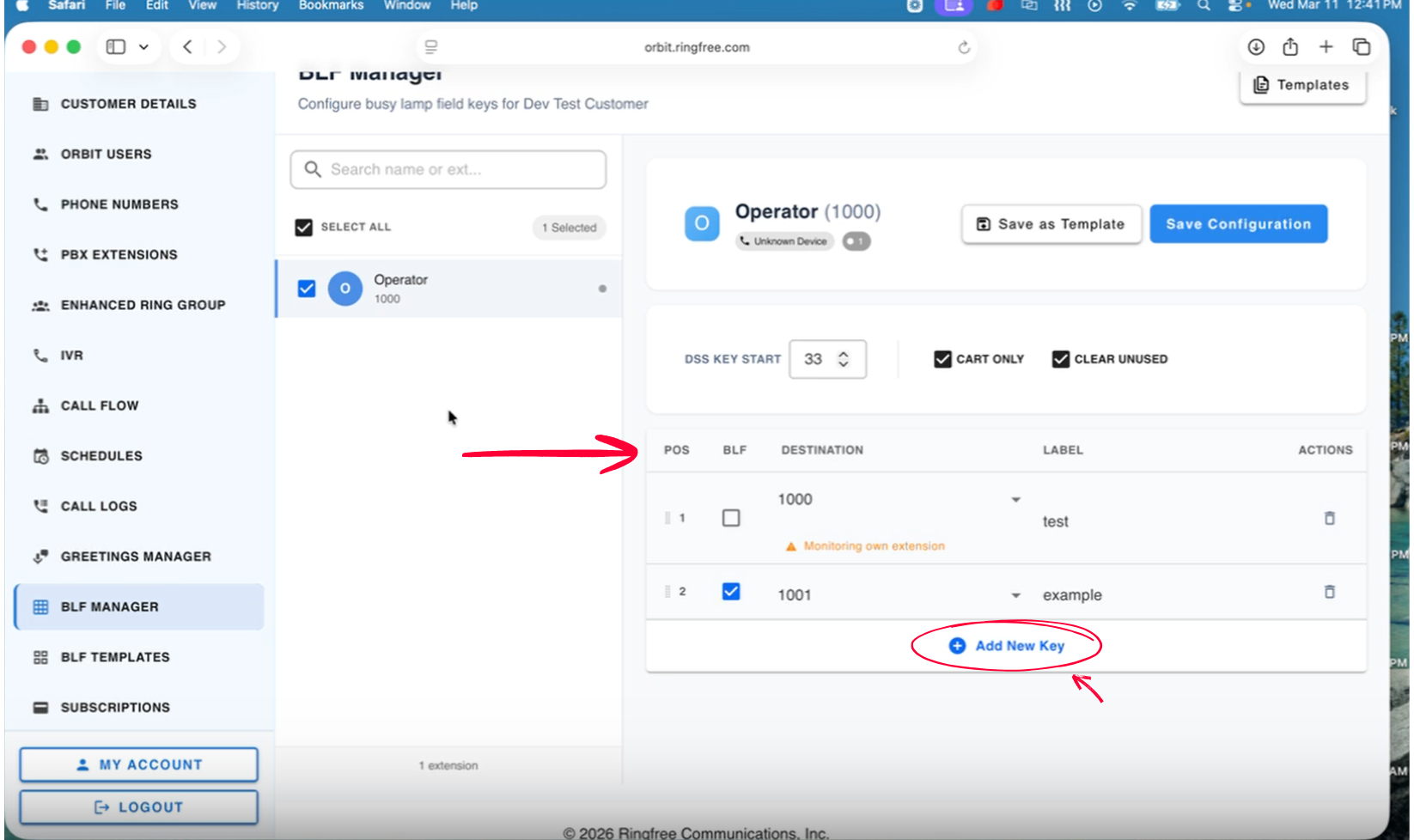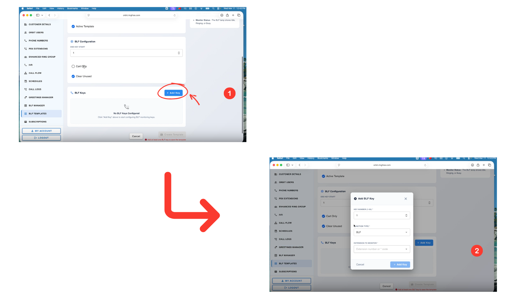 This guide shows how to add BLF or Speed Dial keys to an extension using BLF Manager in Orbit.