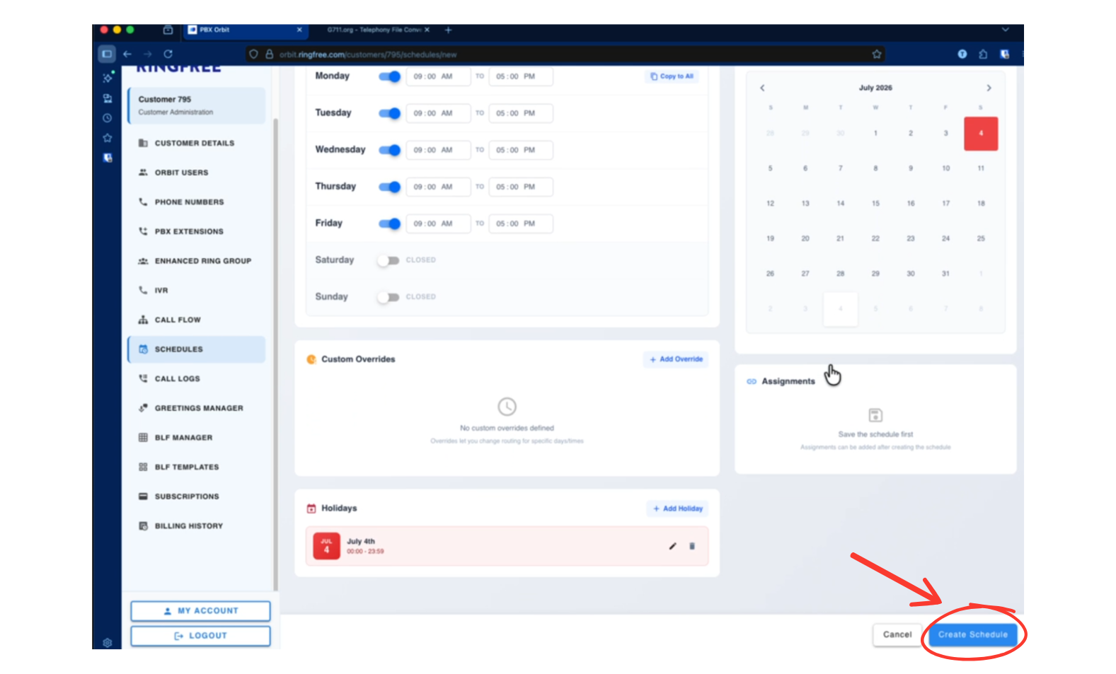 This is the last step. Without this, the IVR will not play based on the holiday schedule.