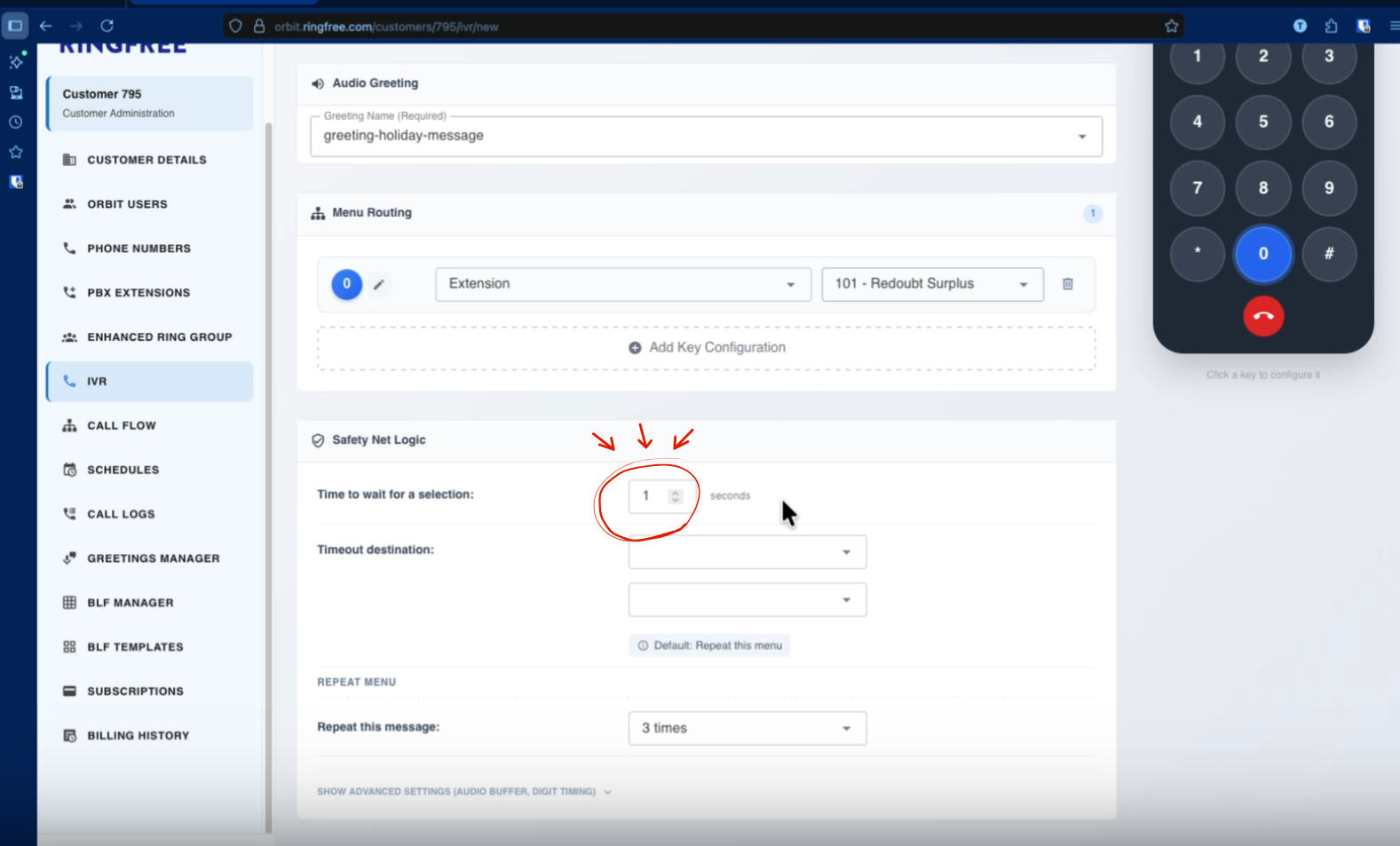 Best practice: if your holiday IVR is mostly an announcement, keep it at 1 second.