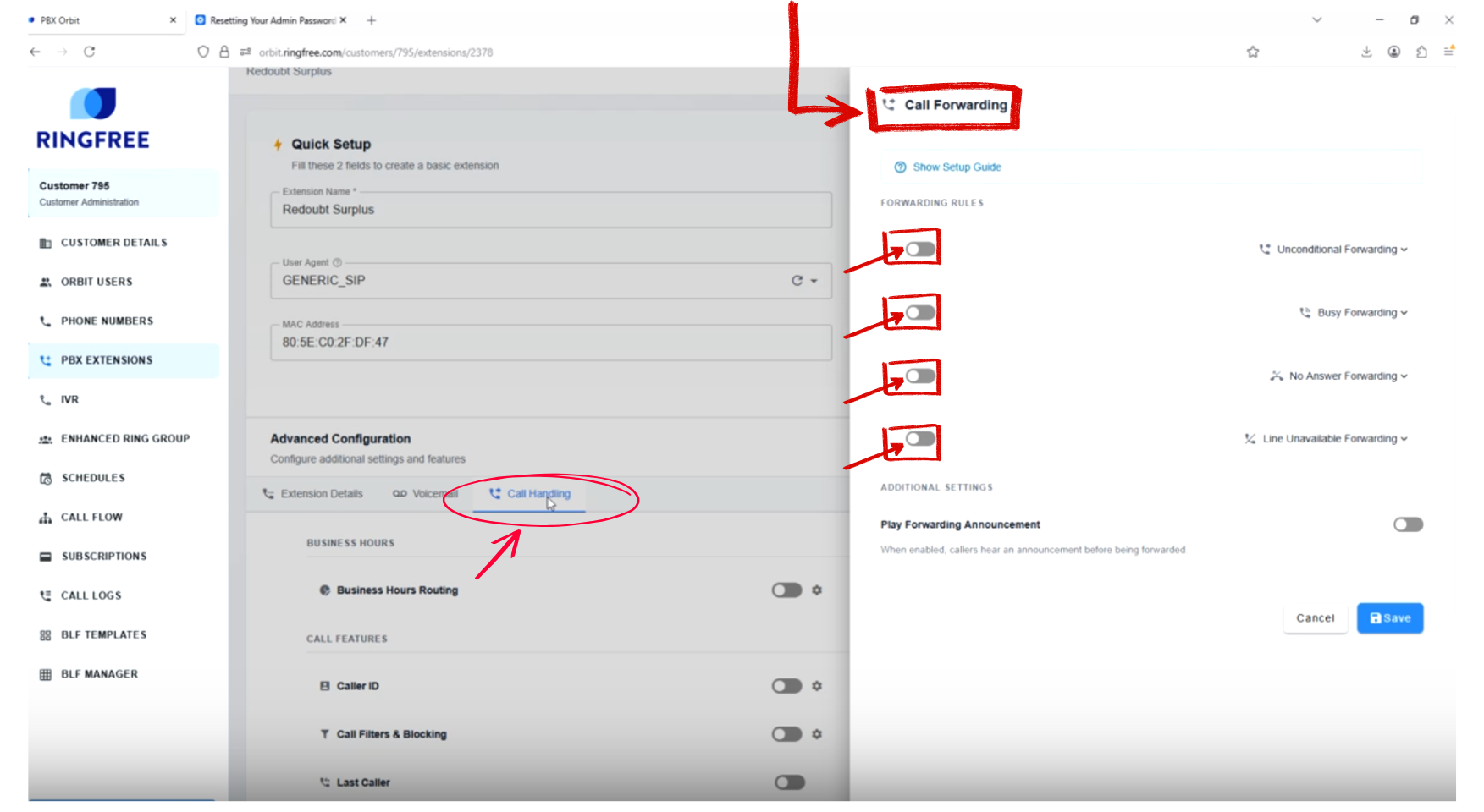Decide if you want forwarding to apply to a phone number, an extension, or both
