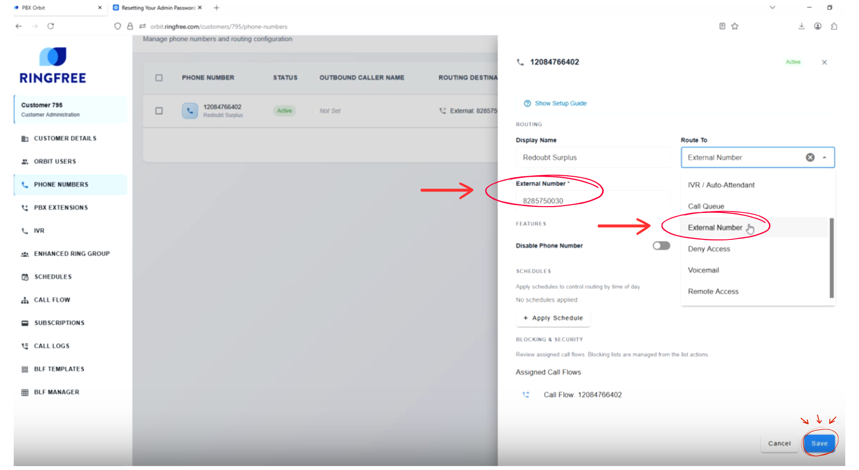 Anytime someone calls this RingFree phone number, the system will automatically redirect the call to the external number you entered. This stays in effect until you change the routing back manually.