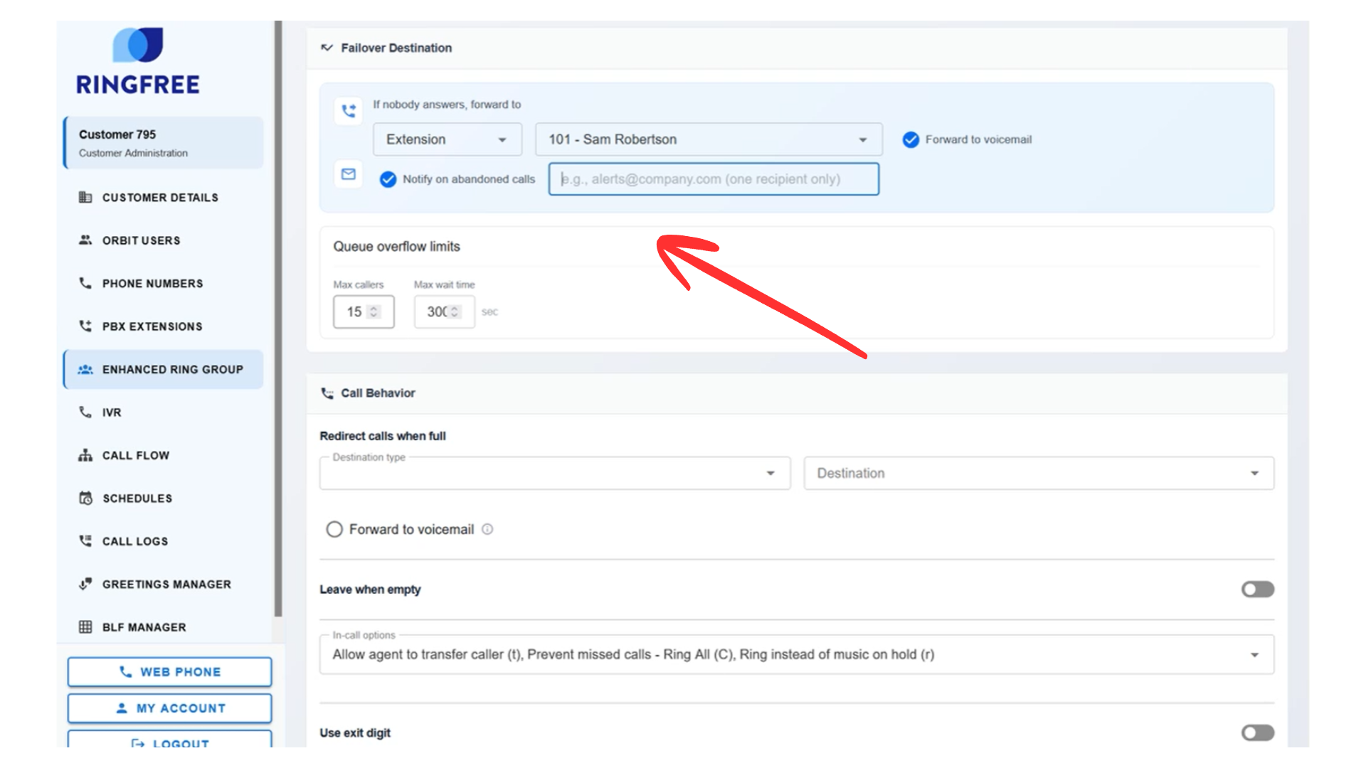 Enable Notify on abandoned calls